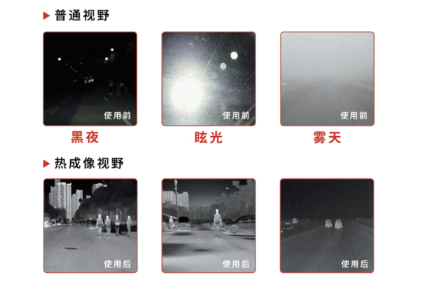 鑫泰HT-V系列车载热成像摄像头可以方便驾驶员在黑暗中提前识别出车辆前部区域的行人和车辆。摄像头能将尚未出现在车辆照明视野中的发热对象从其背景中提取出来,在屏幕上显示,有效的改善驾驶员驾车体验,提升驾驶安全系数。