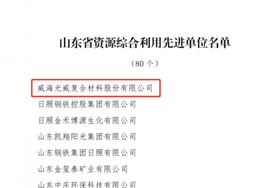 近日,山东省人民政府表彰全省资源综合利用先进单位,威海光威复合材料股份有限公司成功入选!山东省资源综合利用先进单位 山东省资源综合利用先进单位的评选是依据《山东省人力资源和社会保障厅 山东省工业和信息…