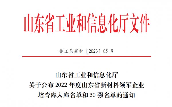 5月19日,山东省工业和信息化厅公布《2022年度山东省新材料领军企业培育库入库名单》和《2022年度山东省新材料领军企业50强名单》,光威复材荣登双榜!