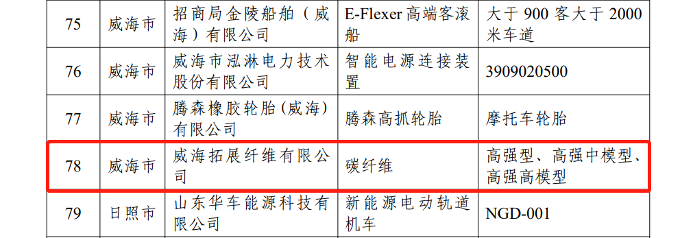 6月15日,山东省工业和信息化厅公布2023年“山东制造·齐鲁精品”公示名单,威海拓展纤维有限公司入选。