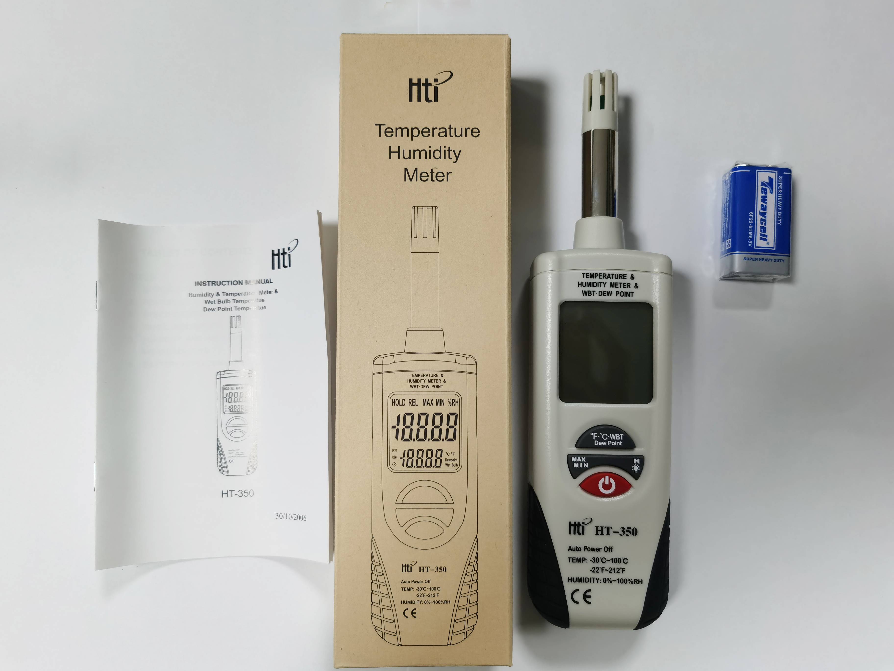 HT-350温湿度计,实时测定环境的温度及湿度,以确定生产或仓储、及其他对温湿度有严格要求的环境条件。