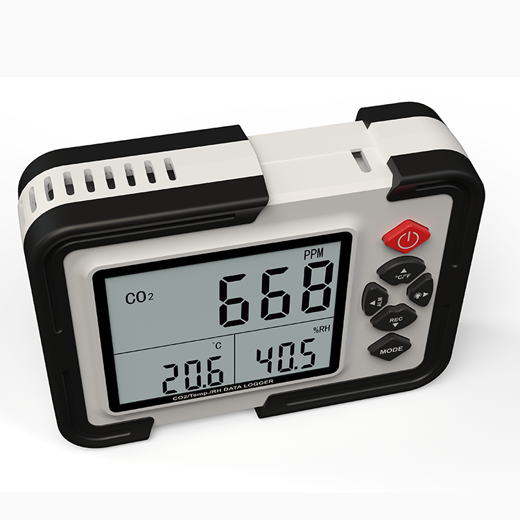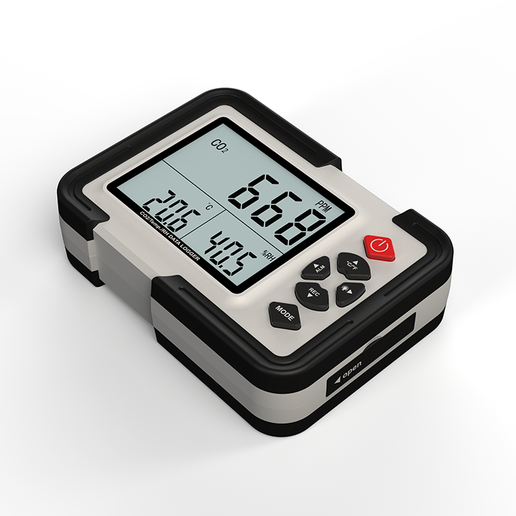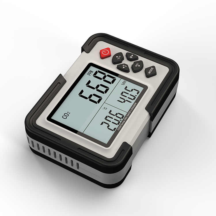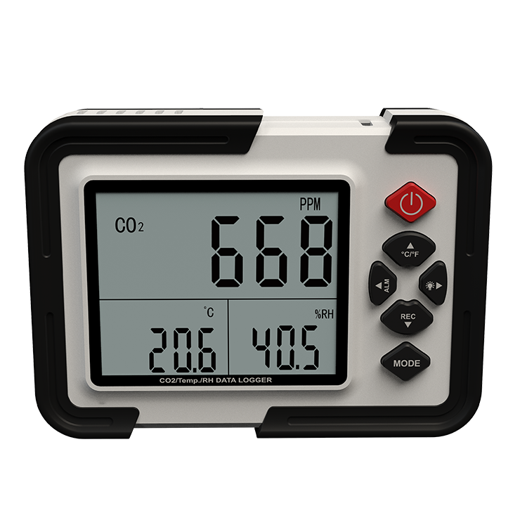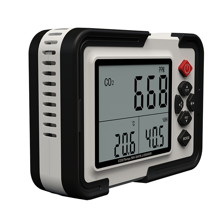 实时记录二氧化碳气体浓度、温度、湿度数据,并同时显示在波晶屏上,可记录数据高达12700组。