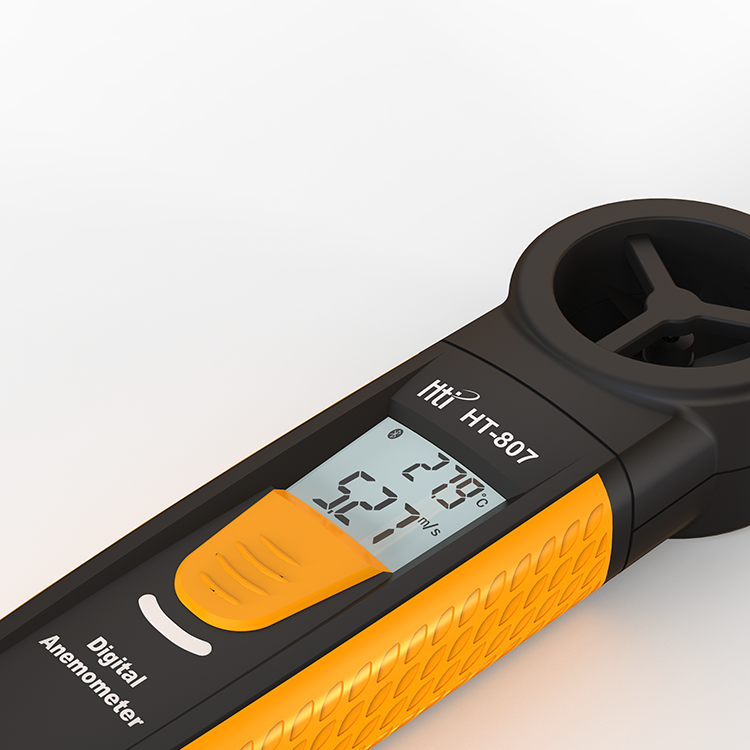 HT-807一体式蓝牙数字风速仪,五种测量单位,一键切换,抗干扰能力强,响应迅速。内置温度传感器,可同时测量环境温度。支持蓝牙传输,数据读取分析更方便,功能强大,适用于多种场景,广泛应用于电力、钢铁、石化、节能出海捕捞业、各类风扇制造、需要抽风排气系统等行业。